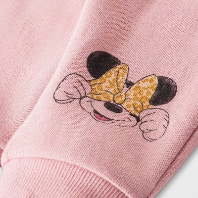 Disney Baby Girls' 2pc Minnie Mouse Long Sleeve Fleece Pullover And Jogger Set - Pink