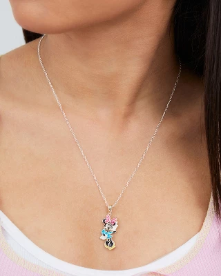 - OFFICIALLY LICENSED DISNEY JEWELRY; Silver Plated Minnie Mouse Pendant Necklace