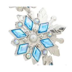 Crown your Elsa costume with our shimmering snowflake headband. Bejeweled settings accented by faux pearls on flexible metal band make this Frozen adornment fit for a Queen. Snowflack design inset with ice blue and clear faceted jewelry with faux pearl accents. Metal headband with soft gel tips for comfort. Genuine, Original, Authentic Disney Store Product.