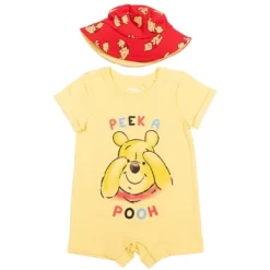 - Officially licensed Disney Winnie the Pooh newborn and infant cute and stylish short sleeve one-piece romper and cute and stylish sun hat
