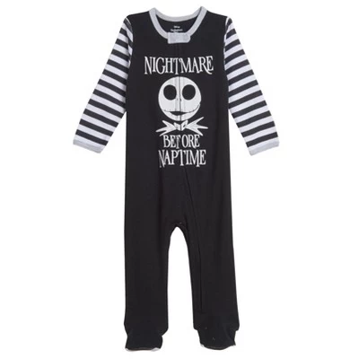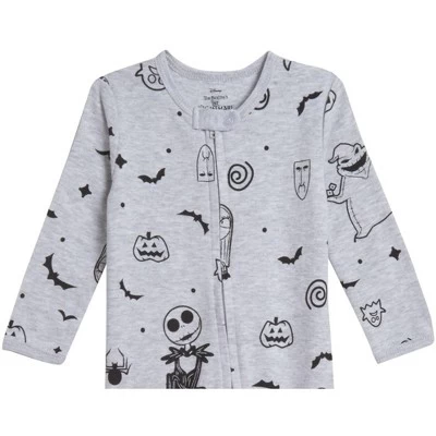 Join Jack Skellington, the Pumpkin King, as he stumbles from Halloween Town to Christmas Town and becomes awed by the festive winter holiday. Help Jack, Sally, Zero the dog, and the other citizens of Halloween Town celebrate and successfully take over Christmas from Santa Claus—without getting Oogie Boogie involved this time! Get your little one ready for this exciting, spooktacular, jolly adventure with this Disney Nightmare Before Christmas Long Sleeve Sleep N’ Play Coverall. With artwork featuring their favorite skeleton character in his cool pinstripe suit, your kid will love wearing this cute and stylish long sleeve sleep n’ play one-piece coverall.