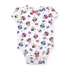 - All over print design; Lap shoulders for easy dressing and quick diaper changes; 3-snap closure for quick and easy diaper changes; Bodysuit with rib knit binding; Soft hand screen print design; Brightly colored assortment