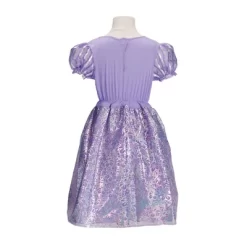 Dressing up in the Disney Princess Rapunzel dress is like stepping into a delightful dream come true. The beautiful princess gown features story-inspired details of soft and shimmering foil lanterns, sundrops, and character friend Pascal, along with stunning platinum finishes that glimmer in the light to celebrate Disney 100 Years of Wonder. Experience the most enchanting adventures and imaginative play with the Rapunzel costume dress.