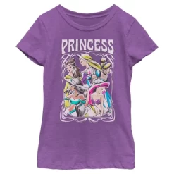 - Strut your stuff with this stylish new girls’ t-shirt that is perfect for every occasion! Featuring Belle, Rapunzel, Cinderella, Jasmine, and Ariel in colorful watercolor print and the word “Princess” above.
