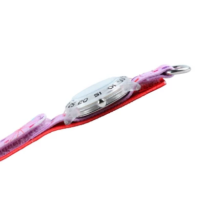 Pink (dial), Nylon (band), Mineral (face), Plastic (hardware)