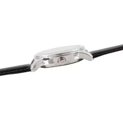 Black (dial), Leather (band), Mineral (face), Alloy (hardware)